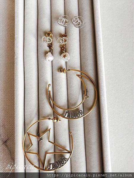 上:chanel中古雙C耳環 中:dior shiny-d系列星星珍珠耳環 下:dior星月耳環